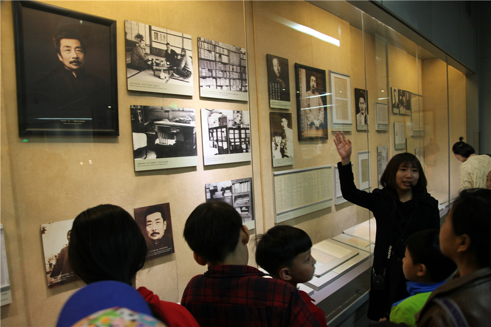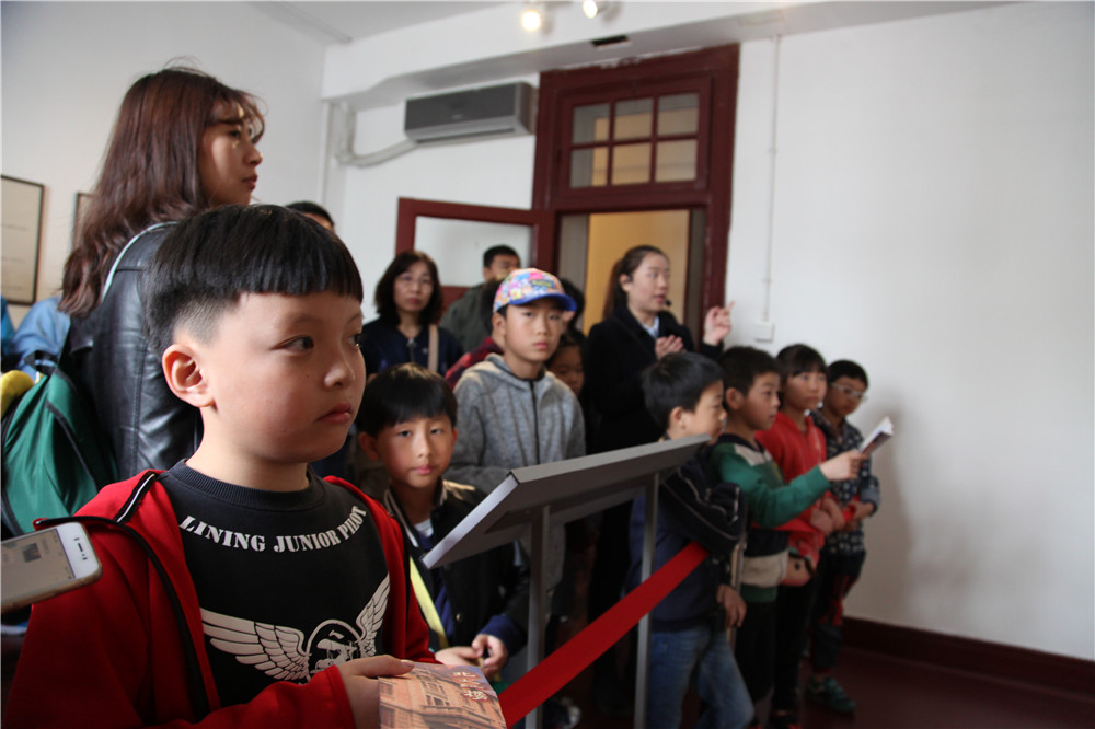 踏入北京新文化运动纪念馆,复原的五四时期北大红楼历史面貌带给观众视觉上的震撼,游学队伍好像瞬间穿越回了“五四时期”。展厅恢复了图书馆主任室、登录室、第二阅览室、第十四书库,以及新潮杂志社、学生大教室、红楼大门等的历史原貌,较全面地展示了陈独秀、蔡元培、毛泽东、李大钊等先驱在红楼工作时的情景,凸显五四新文化运动时期的红楼历史氛围。漫步于此,大家被革命精神所打动,游学队伍中一位家长告诉同行的孩子:“宝贝,正是这些先辈们抛头颅、洒热血,才有了我们今天的幸福生活。今天你了解的革命历史,回去也要讲给你的同学们听。”孩子们坚毅的目光告诉我们,历史将永远被铭记。