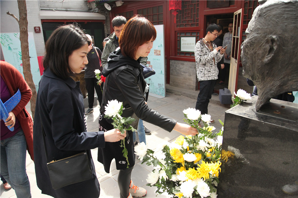 走进老舍的“丹柿小院”,高高的柿子树就像在宣示这座建筑名字的由来。4月5日,正值清明时节,大家一起敬献菊花,缅怀老舍先生。讲解员告诉大家,房内的布置、格局都是按照当年的样子所布置,书桌上的文房用品、台历好像都在诉说着老舍的故事。“我最近正好在读老舍的作品,走进'丹柿小院',亲近老舍创作、生活的地方,感觉更能理解老舍与北京的情缘,以及老舍作品的精神所在。”一位随行的观众朋友说到。大家流连于“丹柿小院”,细细品味,仿佛这位文坛泰斗并未离去,依旧在这里继续他的创作,相信他的作品将会世代流传。