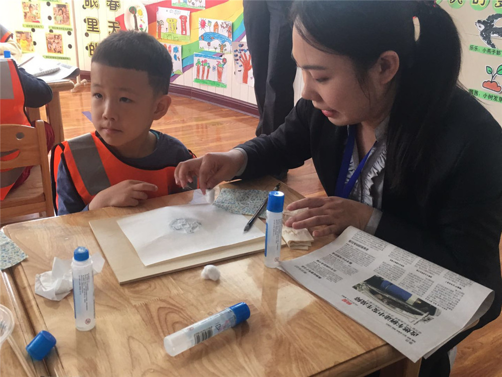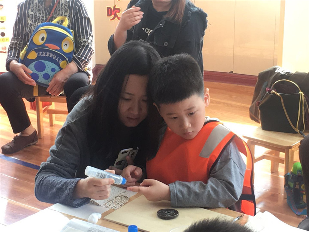 4月30日,天津博物馆走进河东区第四幼儿园,为这里的小朋友们带去两场别开生面的“古钱币”拓印体验课程。一共26名小朋友参加了活动体验,大家先是用橡皮泥将要拓印的钱币固定在模板上,接着将纸轻轻粘在钱币上,轻柔地挤出其中的空气泡泡,用传统方法制作了拓包之后,蘸墨拓出了钱币的形状。这不仅是一趟手工课,更是一场别开生面的传统文化宣传课。