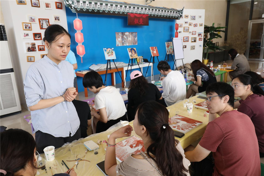 之后,刘老师为大家讲授了立粉贴金这一绘画技法,它是中国古代壁画常用的技法,称之为中国古代裸眼3D。通过对比老师带到活动现场的两幅作品,大家对整体画作的把控和技法细节有了更加深刻的认识。