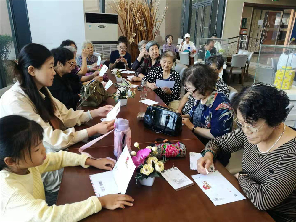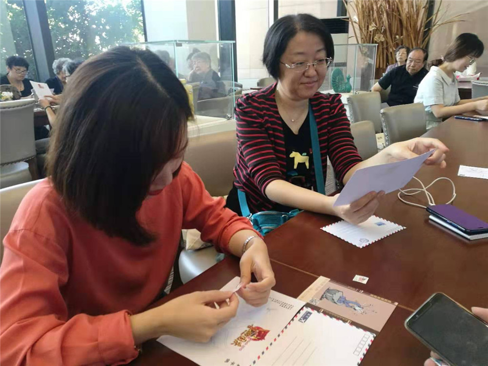 天津市河西区非遗“邮票画”的传承人唐晟炜老师为到场的亲子家庭介绍了有关国庆主题的作品“七十华诞送和平”创作理念,同时为大家讲解了邮票画的来历和作品的寓意,希望家长能够通过书写一封封家信传递对孩子的成长祝福和对家风的传承。