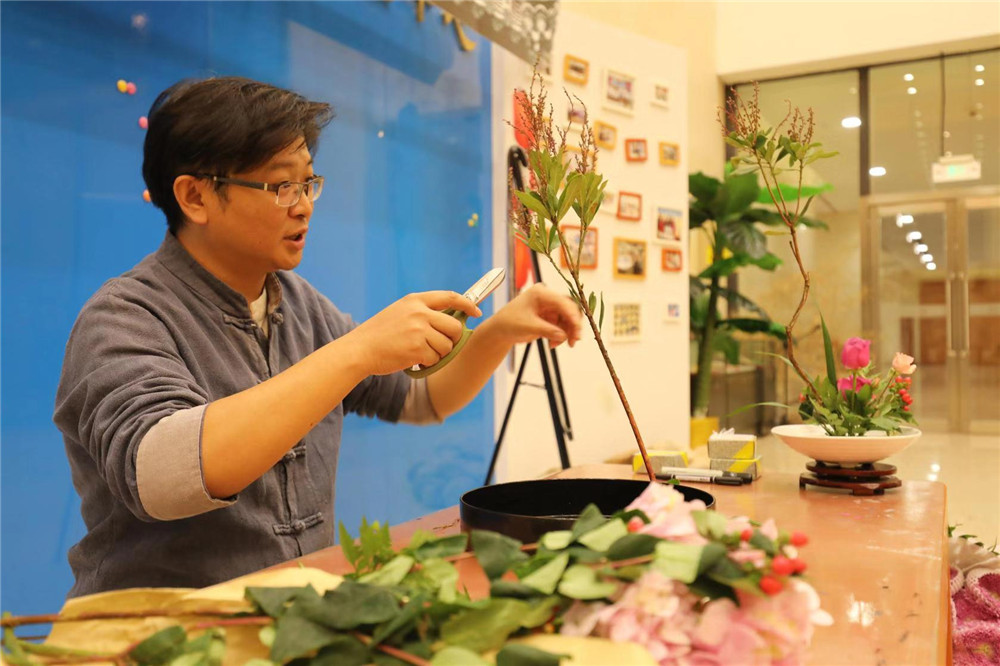 10月5日晚,在天津博物馆二楼“博趣坊”,上演了一场中式传统插花的艺术课程。天津博物馆特聘专业插花老师,使用绣球花、玫瑰、蔷薇、一叶兰、火龙珠等花材表现中国传统花卉意境,现场为观众教授中式插花艺术。到场观众不仅体会到了中式花艺审美,还将自己插好的花卉盆栽带回家,活跃节日气氛。