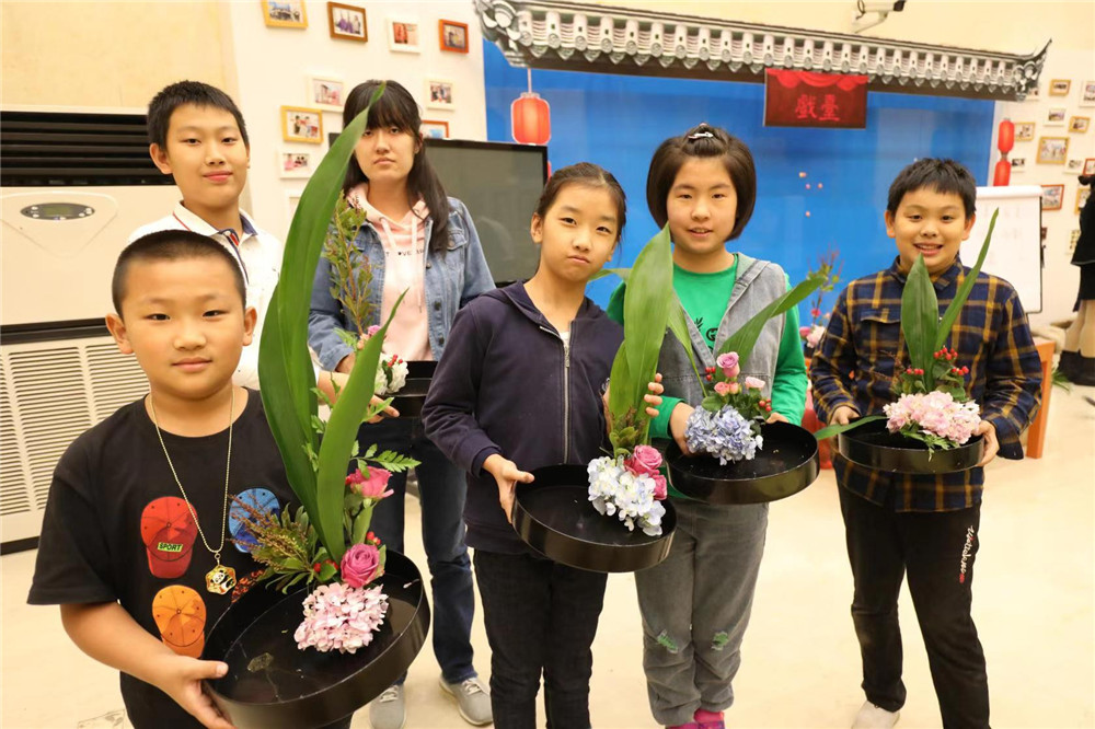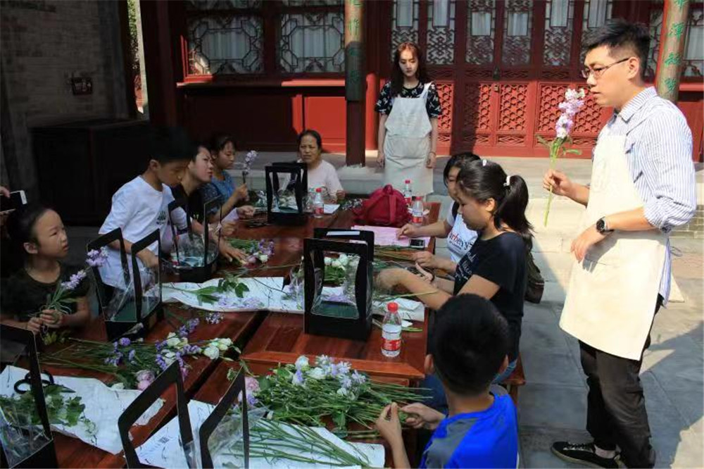 最后一关,大家“闯”到插花环节,专业的插花老师带领孩子和家长认识了各种花材,有玫瑰、桔梗、勿忘我、藿香、栀子叶,孩子们体会插花这门艺术的同时,亲手为自己制作了一个漂亮的国庆花篮,用鲜花装点节日的故居。