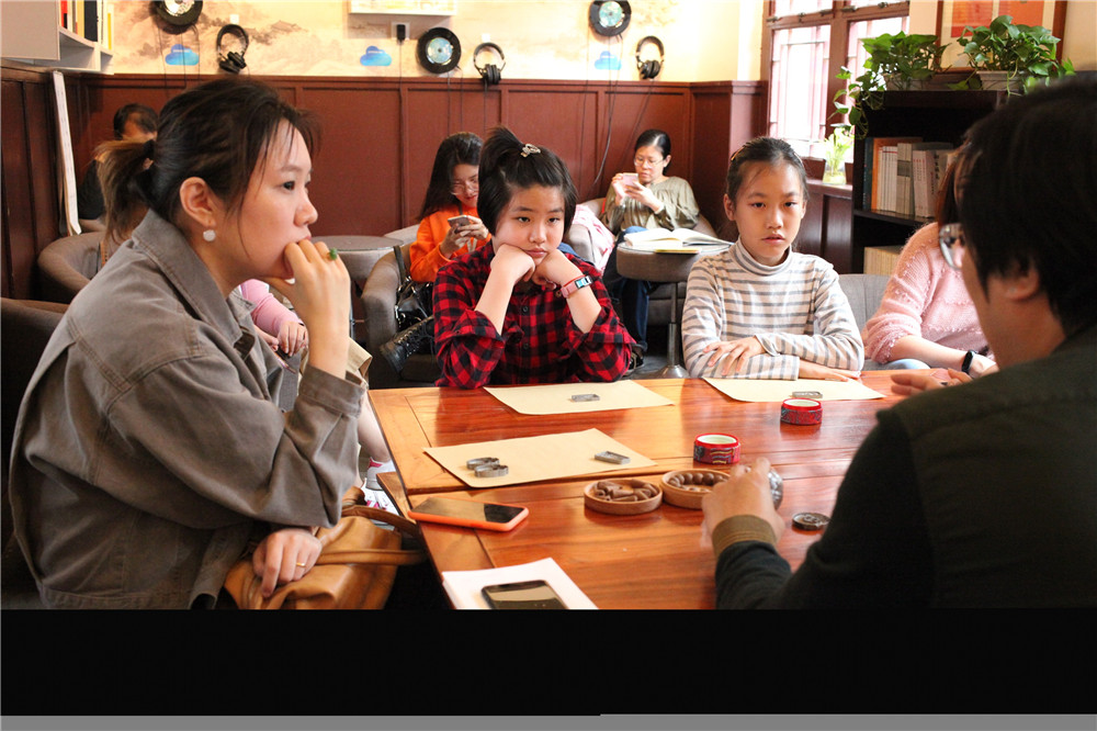 与此同时,李叔同故居纪念馆也迎来了“传非遗技艺 赏故居秋菊”游园同乐会的第二期——“趣味大闯关”活动。整个闯关活动分为三关,第一关是“猜谜闯关”活动,故居院子里的树上挂满了各种谜题,孩子们挑选在树上的纸笺回答问题,猜出谜题的孩子得到了李叔同故居纪念馆准备的精美国庆纪念邮票一份。