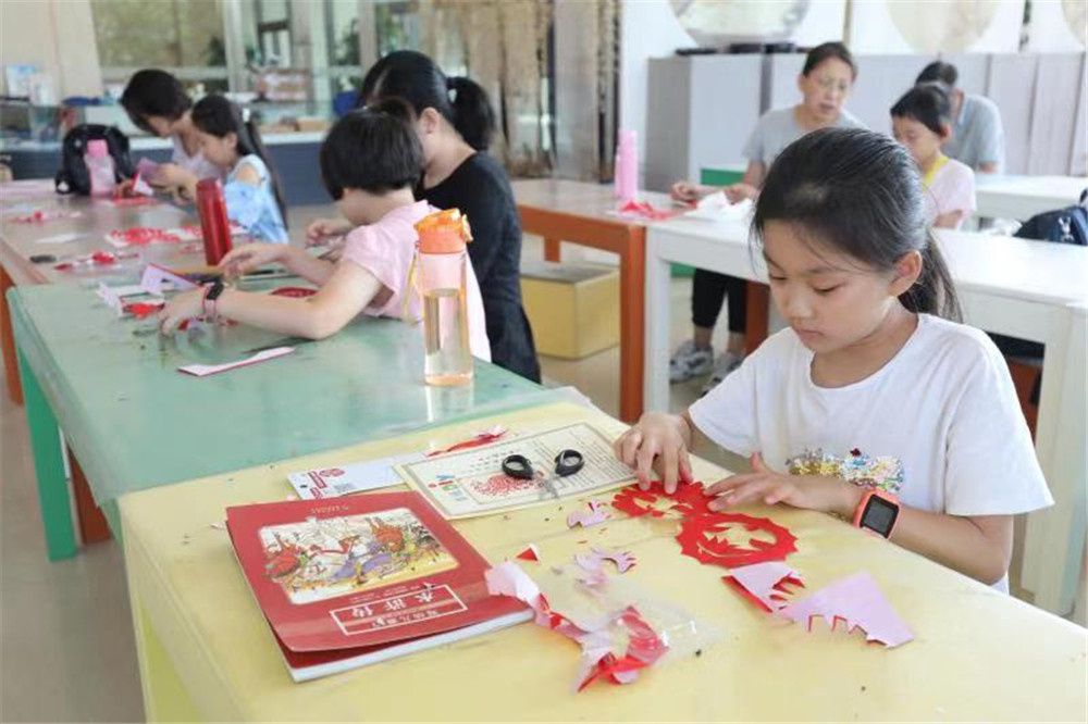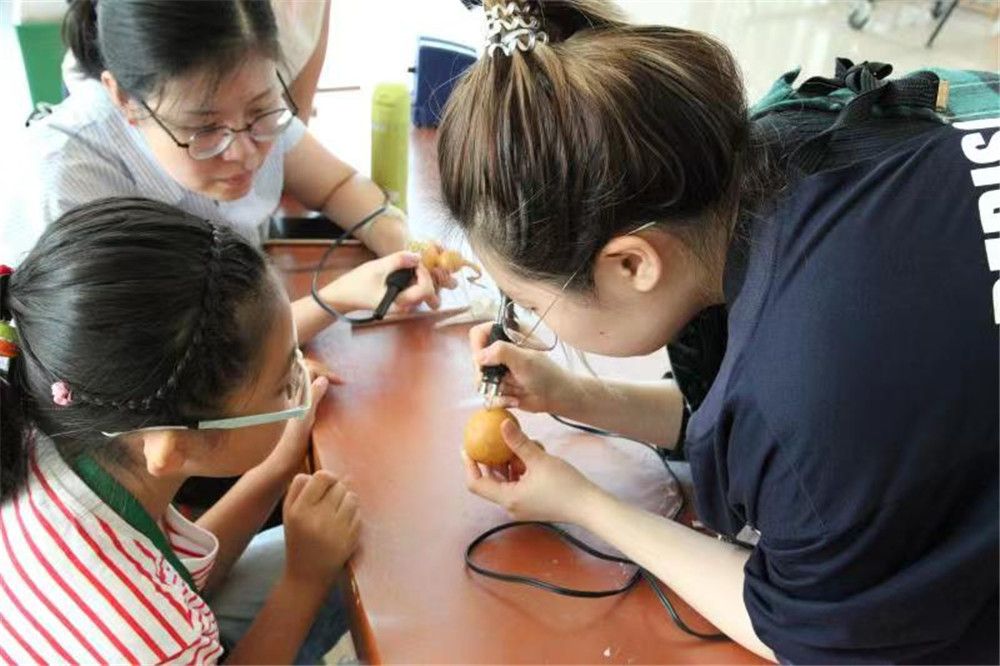10月2日和3日,在天津博物馆二楼的活动角,烫葫芦和剪纸经典非遗技艺课程备受观众喜爱。孩子们开动脑筋,在两位非遗传承人老师的指导下进行创作。这样的体验活动不仅带给孩子们接触非遗技艺的机会,更给了他们一次与非遗匠人面对面的机会。老师一丝不苟的匠人精神感染了大家,孩子们也学会了专注和认真。很多家长也表示,希望借此机会培养孩子们对于非物质文化遗产的喜爱,若是能以此为契机,步入非遗的艺术殿堂,也是再好不过了。