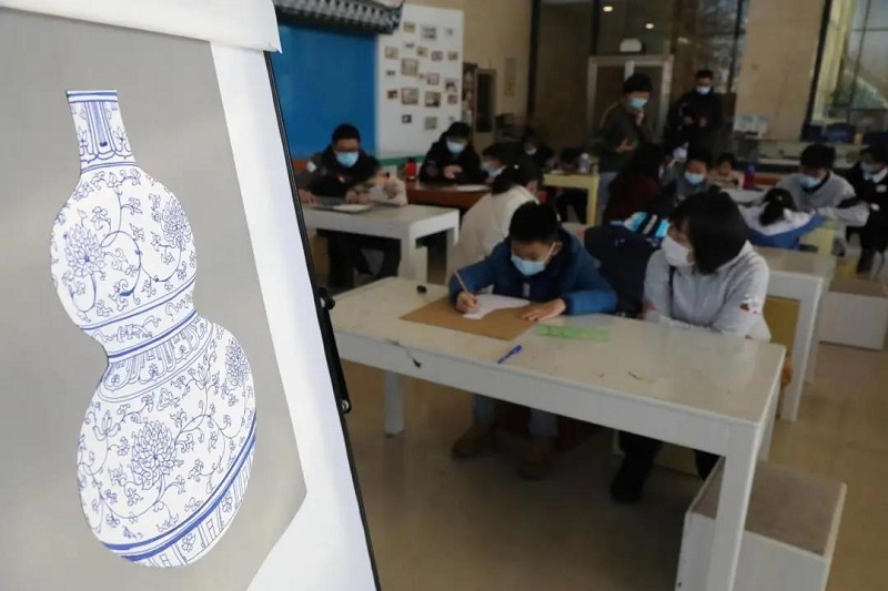 小朋友与家长们无不被这种“传世之瓷”的浓烈艺术氛围所感染。如果你在现场看见,一定会被它的美所震撼:明明只是青白两色,却偏有一种不动声色的绚丽;明明落笔简洁,却偏有一种自内而外的华美;明明恣意风流,却偏有一种散落空灵的潇洒飘逸......