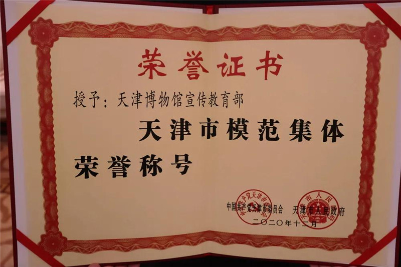 2020年12月23日,中国共产党天津市委员会、天津市人民政府授予天津博物馆宣传教育部“天津市模范集体”荣誉称号并授予奖状和奖牌。