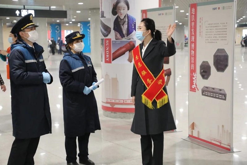 在天津站地铁三号线入口,有一处别致的“景观”——天津博物馆“地铁里发现博物馆的美”流动展览。整个展区仿佛一列飞驰的列车,展现了近50件天津博物馆藏精品文物。有的观众驻足于展板之前,听天博讲解员讲述文物背后的故事;有的观众在这个特别的日子倾听雷锋的故事,收获满满正能量!人来人往的站台之间,提着旅行箱的乘客边走边说,“博物馆宣传这么贴心,天津真是一座有温度的城市!”