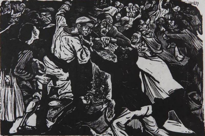 “寒凝大地”——20世纪三四十年代,面对日本帝国主义的野蛮侵略,中华民族浴血战斗。在鲁迅的倡导和中国共产党文艺政策推动下,木刻版画因其材料简单、创作快捷,迅速成为激励全民抗战的文化先锋。劳苦大众的苦难与屈辱、民族危亡的觉醒与抗争,成为抗战时期木刻版画表达的主题。