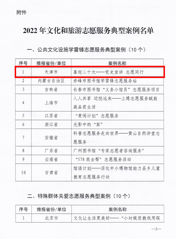 天津博物馆志愿服务项目获评2022年全国文化和旅游志愿服务典型案例