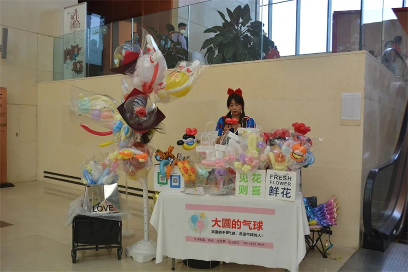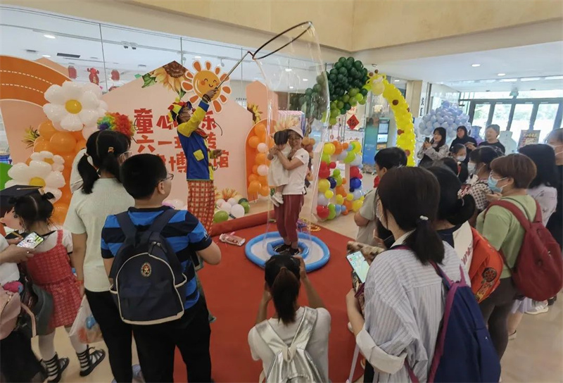 一大早,文创商店前也排起了长龙,“小丑”叔叔惊现天博文创商店,现场编制创意气球赠送给今天到达打卡点的前61位大、小朋友。孩子们情绪高涨,纷纷在文创商店前拍照留念,与小丑叔叔共度一个童心童趣、欢乐无限的儿童节。