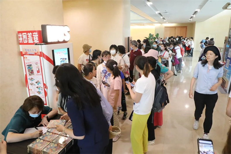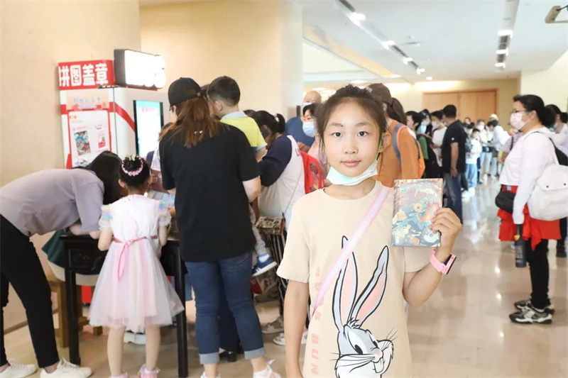 天博精心策划“特展打卡季”活动,为大家准备了“61个精美盖章套盒”作为节日礼品。6月1日上午9:00,小朋友们就自觉排起了长队,孩子们领到卡片后,纷纷对工作人员表示感谢,一份小小的礼物,即可温暖孩子的心灵,他们纷纷拿出卡片拍照留念。