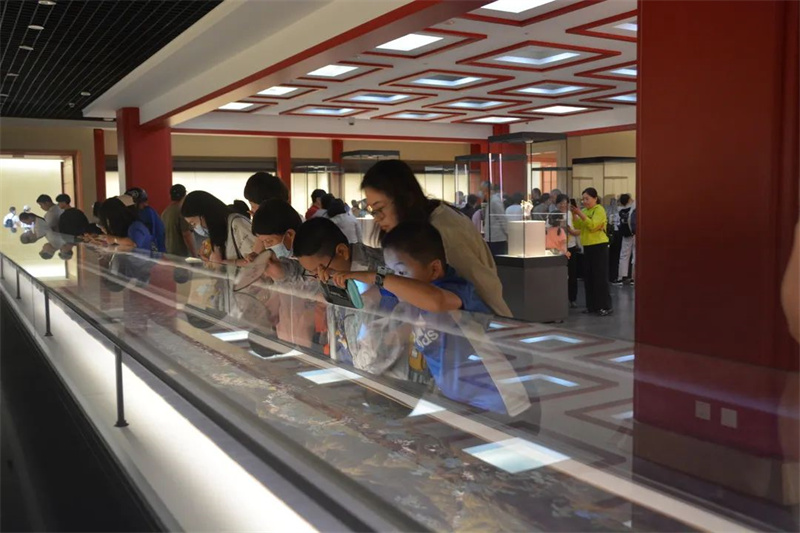 天津博物馆诚意满满,为观众准备了实实在在的福利。六一这天,14周岁以下儿童(须有家长陪同)及一名家长可凭本人有效身份证明原件,免费参观在展的“声动千年——中国古代音乐文物特展”和“天下长安——陕西唐代文物精华展”。近观文物的千姿百态,感慨历史变迁,徜徉在在天津博物馆中,市民们不必远行即可看“天下长安”,听“声动千年”,观“了凡善学”,忆“三味书屋”,赏“博古开新”,品“耀世奇珍”,追寻“近代天津”,传承红色精神!