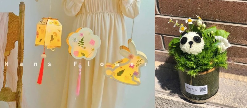 花草灯是当代花草工艺与灯笼工艺结合的一种装饰品,花草纸在采用古法造纸流程的基础上进行了创新,在制纸的过程中加入了干花、树叶等新元素,让纸张更加美观。