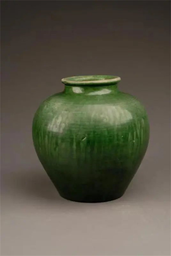 绿釉罐器型饱满,釉色翠绿,纯净润泽,是当时的精品之作。绿釉陶器早在汉代就作为随葬的明器大量出现了。到了唐代,绿釉作为三彩器中的一种重要釉彩,是以氧化铜为着色剂,铅为助溶剂烧造而成的。