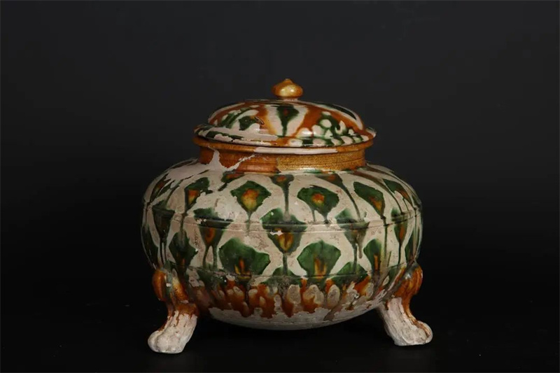 唐 三彩带盖罐 (陕西省西安市东郊王家坟出土 陕西历史博物馆藏)