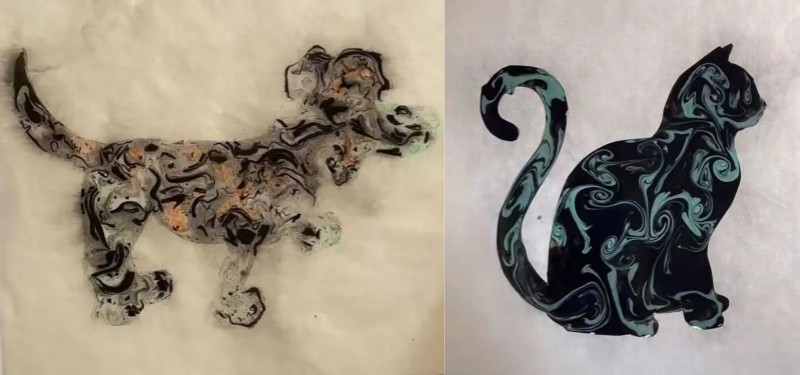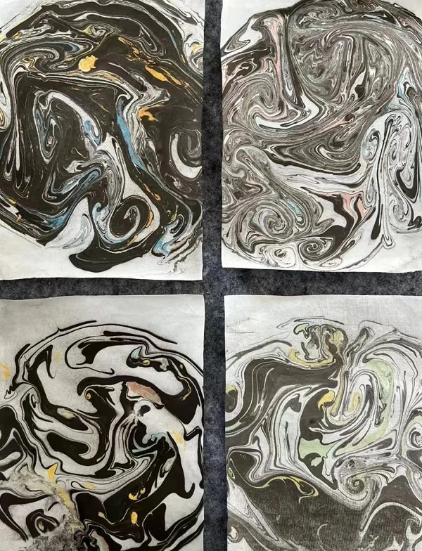 3.学习传统水拓画,完成水墨团扇作品