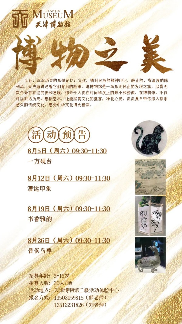报名方式:天津博物馆宣教部 13502159815 郭老师 / 13512231826 刘老师