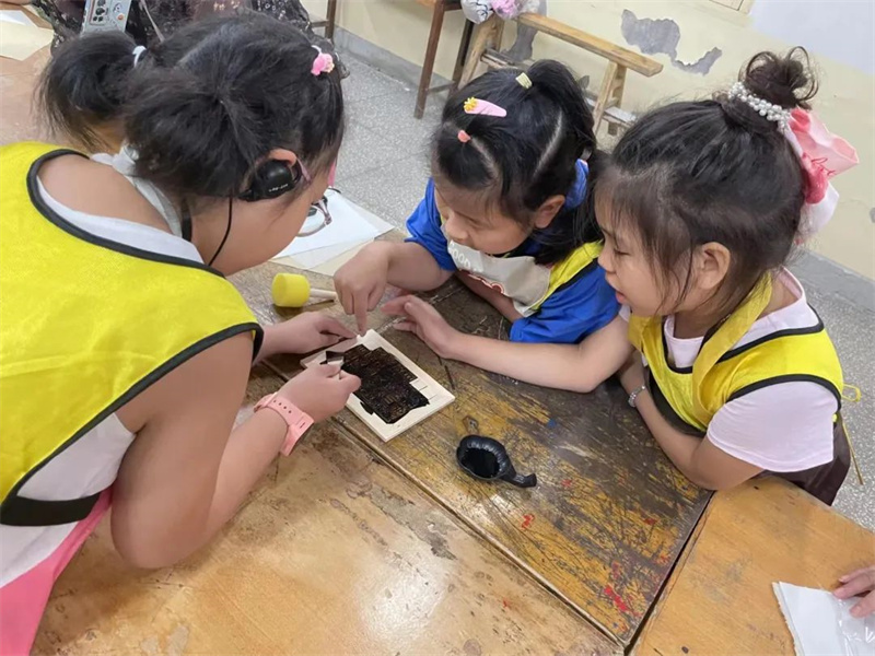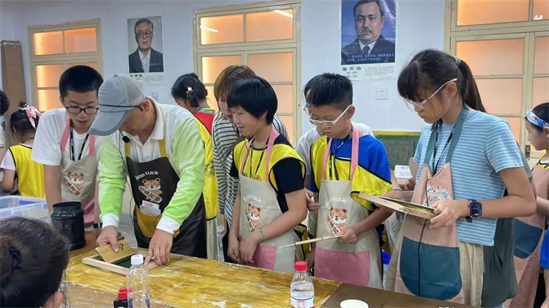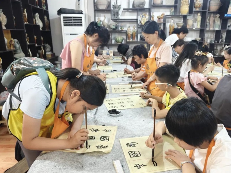 秦篆书法——通过老师们的讲解,孩子们近距离感受秦篆书法的书写特点和丰富的表现力。孩子们专注而兴致盎然地挥毫,每一笔每一画都是用心书写。他们品味着墨香,感受着笔尖与纸张的交融。书法不仅是一门艺术,更是一种与自己对话的方式,通过书写,孩子们展示了他们独特的个性和创造力。