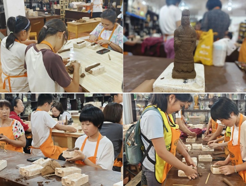 兵马俑制作——在秦陶俑制作研学基地,孩子们团泥、压按、脱模,体验着秦兵马俑的古法制作工艺,认真听认真学,团结协作,真正体验到劳动实践的乐趣。师生们由衷赞叹着,秦俑工艺真是中国古代劳动人民聪明才智的缩影。