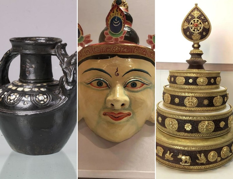 a 欣赏摩梭人日常事物及艳丽色彩和纹样