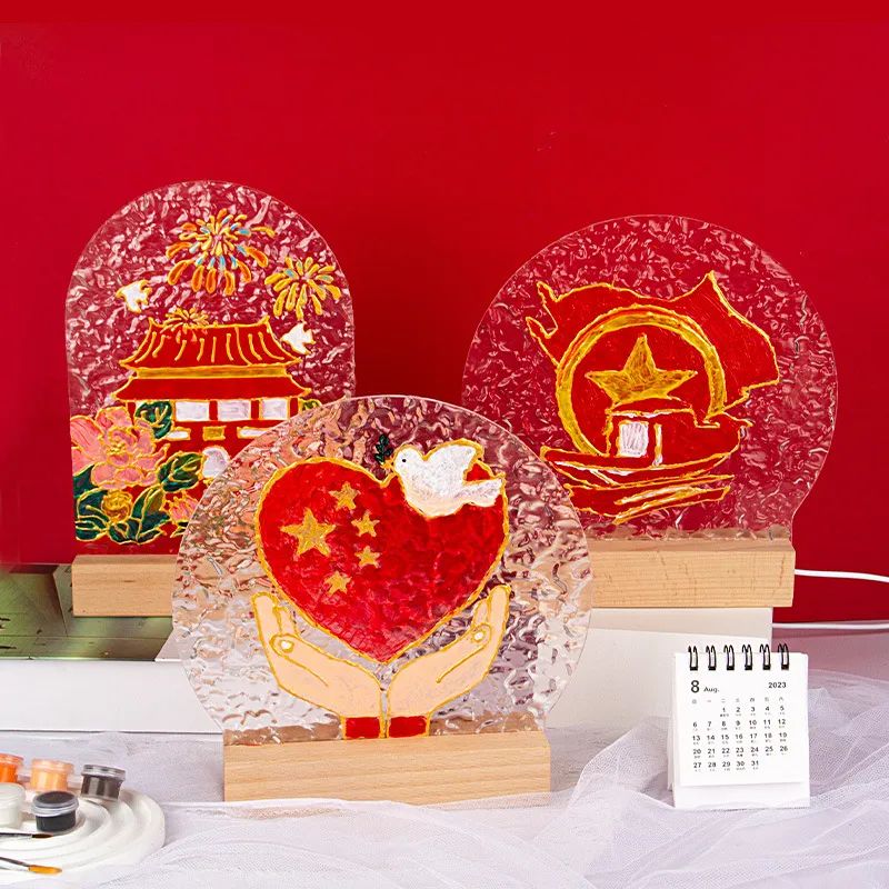 "流光夜彩"的玻璃灯。掐丝珐琅作品具有双重属性,即纯艺术性和工艺性。对于掐丝珐琅作品而言,其艺术性的创造是首要的。它既然是画,就必定有它的一种独特艺术效果,有它存在的艺术价值。所以好的掐丝珐琅作品,一定是既有着绘画的独特意境,又兼具珐琅传统工艺的富丽堂皇之美。根据简易掐丝工艺,绘制玻璃画小夜灯。