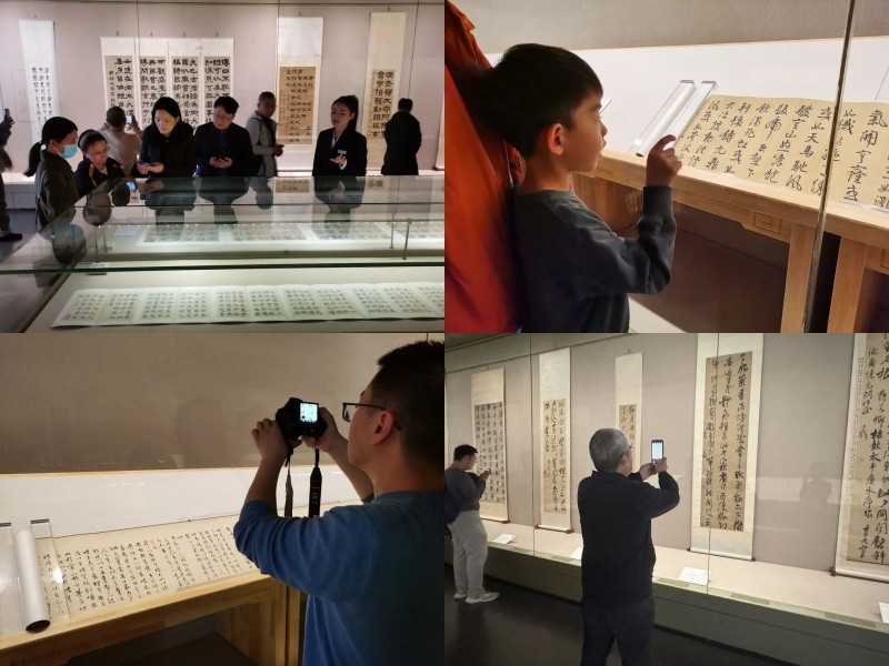 15日开展以来,不少观众前来看展,或是仔细查看不同字体流派的区别,或是听专业人员讲解明清书法发展历程,或是拍照留念,让充满意蕴和情趣的作品永远留存。观众纷纷表示,非常佩服古代书法的高超技艺,也对以中国书法为代表的传统文化兴趣更浓了,以后还会二刷、三刷该展,这么优秀的展览值得反复品鉴。
