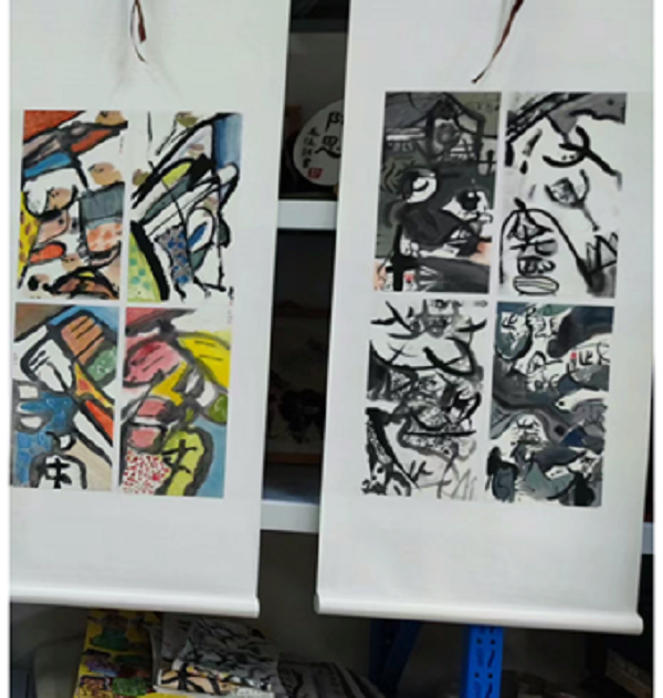 使用技法:水墨,书法,色彩搭配