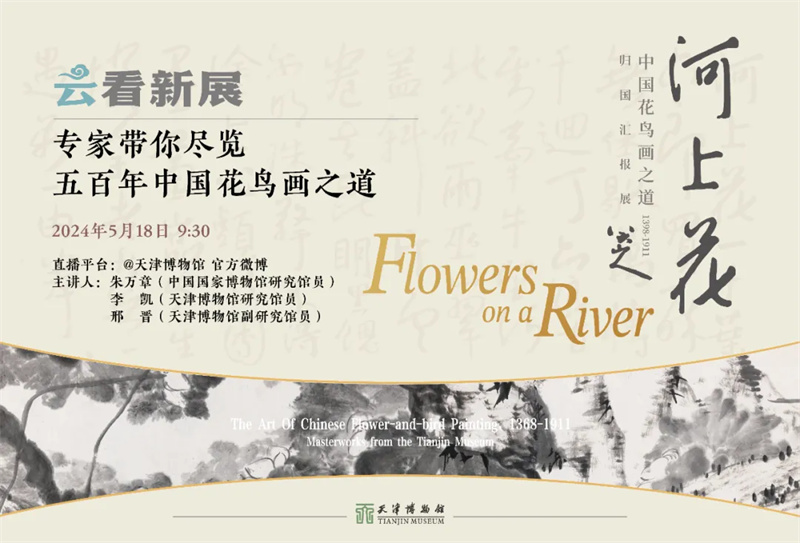 为深入解读展览内容,今年5·18博物馆日期间,天津博物馆将面向公众推出“文博讲堂”特别活动。届时,著名美术史学者朱万章先生以及国家鉴定委员会委员李凯先生将应邀走进天博,以对话访谈形式围绕“明清花鸟画艺术”主题进行深度学术交流。欢迎广大观众在博物馆年度盛会当天走进天博,聆听学者谈古论今,赏鉴中国花鸟画意境之美。