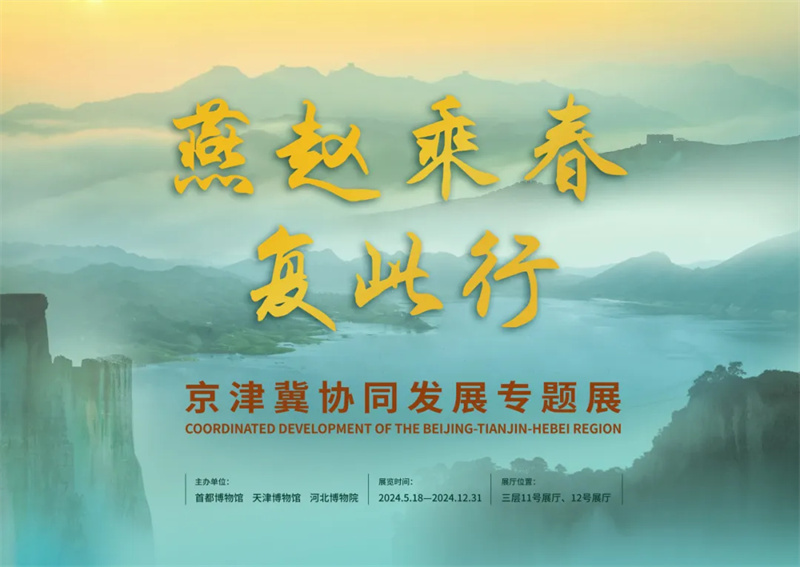 “燕赵乘春复此行——京津冀协同发展专题展”是北京大运河博物馆(首都博物馆东馆)体现北京城市副中心对接京津冀协同发展功能的专题展览。该展是京津冀协同发展国家战略提出十周年之际,首都博物馆、天津博物馆、河北博物院联合主办的重量级展览,汇集京津冀三地文物、展品、档案资料等398件组,展示京津冀三地历史上形成的地缘关系和城市群关系,帮助观众更好理解京津冀协同发展国家战略的重要意义。