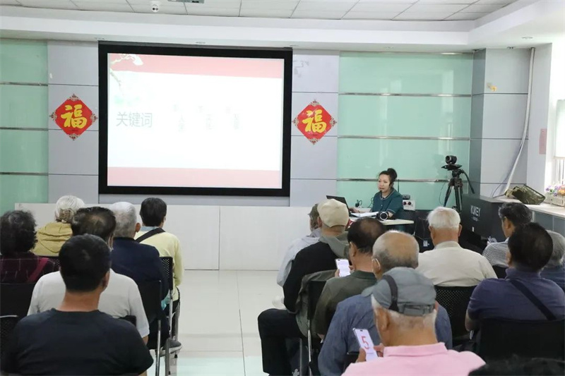 老年朋友在台下听的认真,学习劲头十足。讲座结束后,大家积极沟通询问,社教老师一一详细解答,赢得了听众朋友们的一致认可。