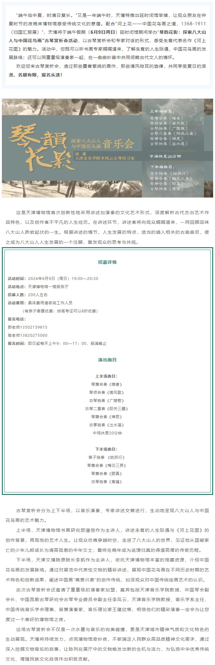 本周日与您相约天博,“琴韵花影”音乐会来啦!