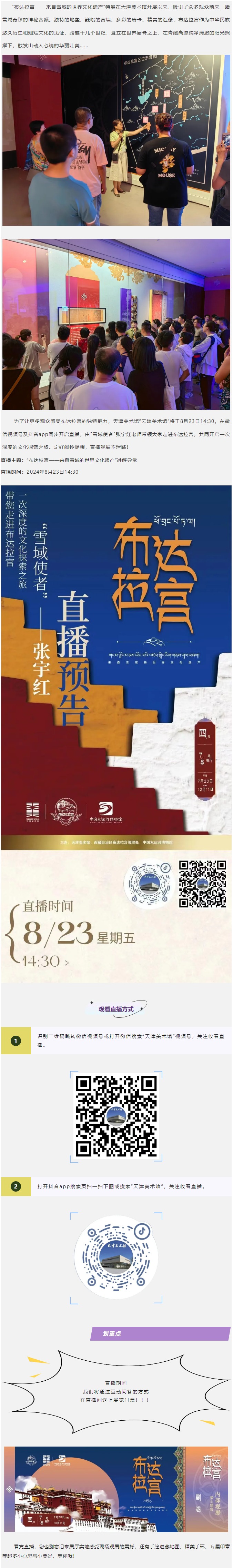 直播主题:“布达拉宫——来自雪域的世界文化遗产”讲解导赏 直播时间:2024年8月23日14:30