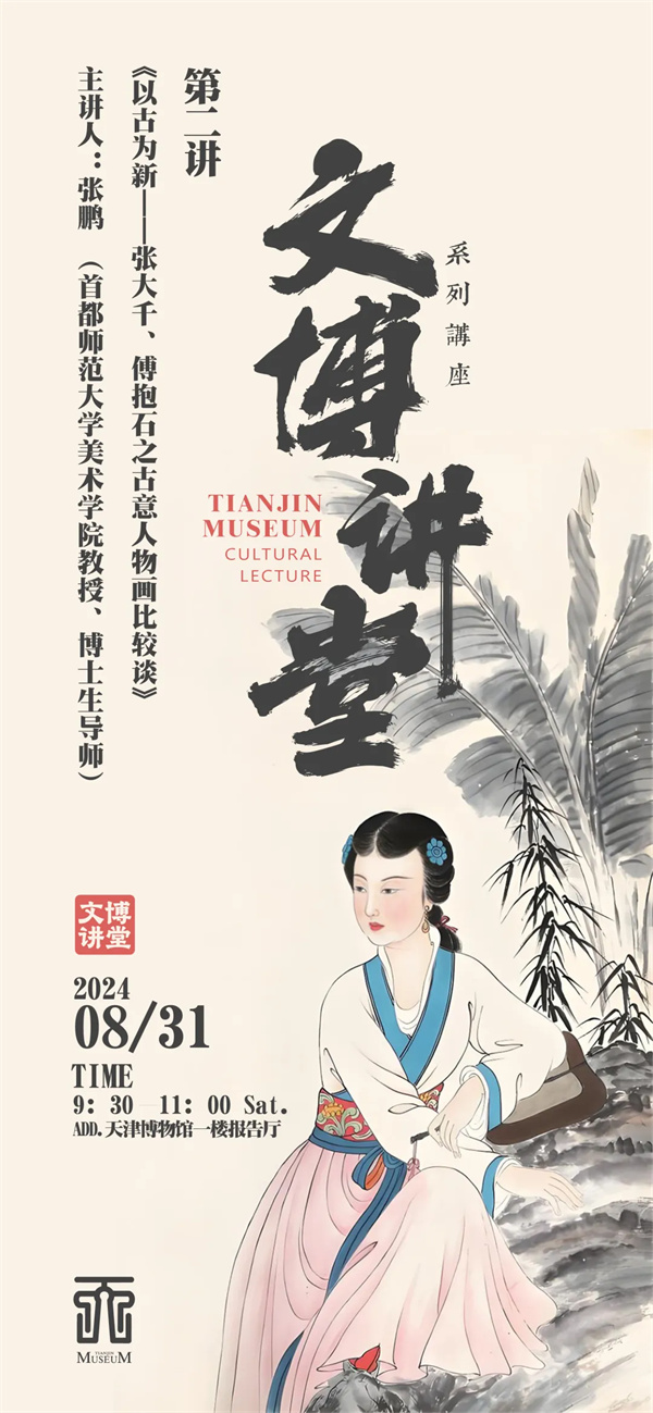 本周六(31日),“文博讲堂”将邀请首都师范大学美术学院张鹏教授以《以古为新:张大千、傅抱石之古意人物画比较谈》为题,继续为大家带来“张大千展览系列讲座”。届时,主讲人将从20世纪中国人物画两位代表画家的横向比较中,引导观众共同关注和探索古意人物画的创作体系,进而启迪书画爱好者形成对人物画作品的独特赏鉴视角。