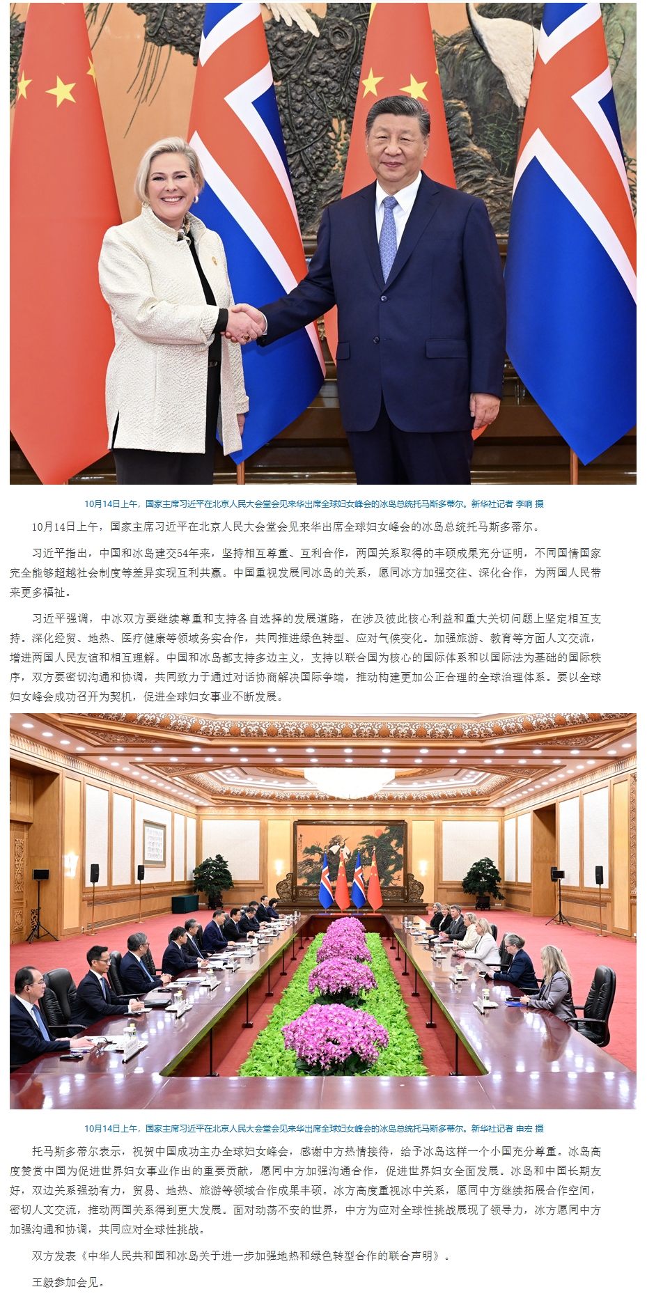 习近平会见冰岛总统托马斯多蒂尔