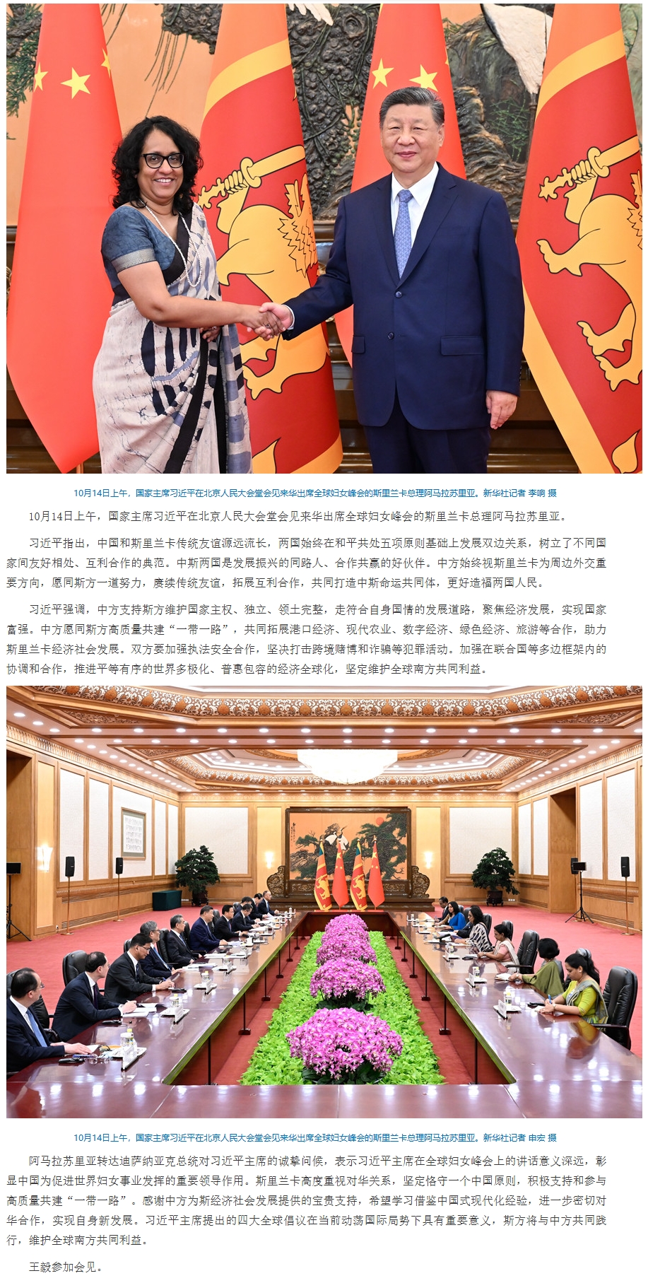 习近平会见斯里兰卡总理阿马拉苏里亚