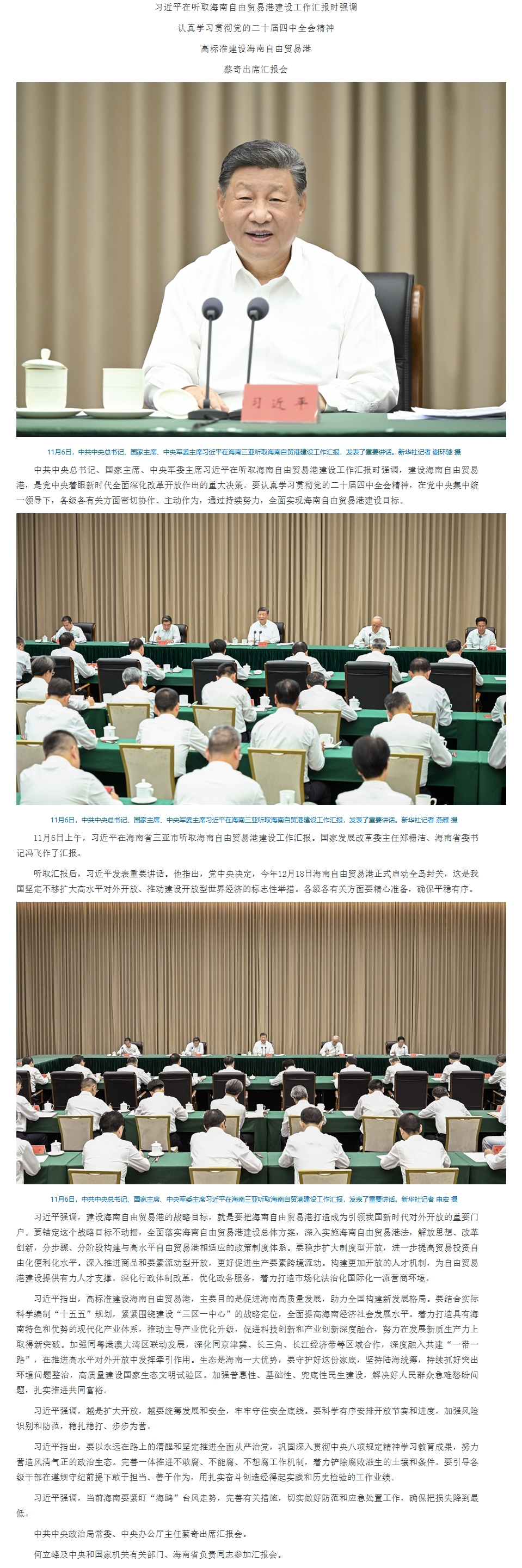 习近平:认真学习贯彻党的二十届四中全会精神 高标准建设海南自由贸易港