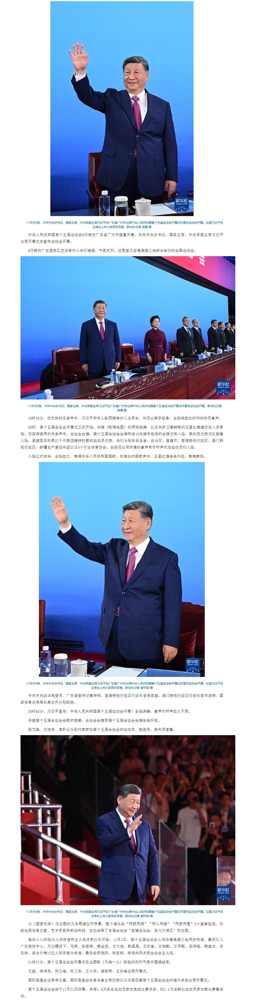 第十五届全国运动会在广东广州隆重开幕 习近平出席开幕式并宣布运动会开幕