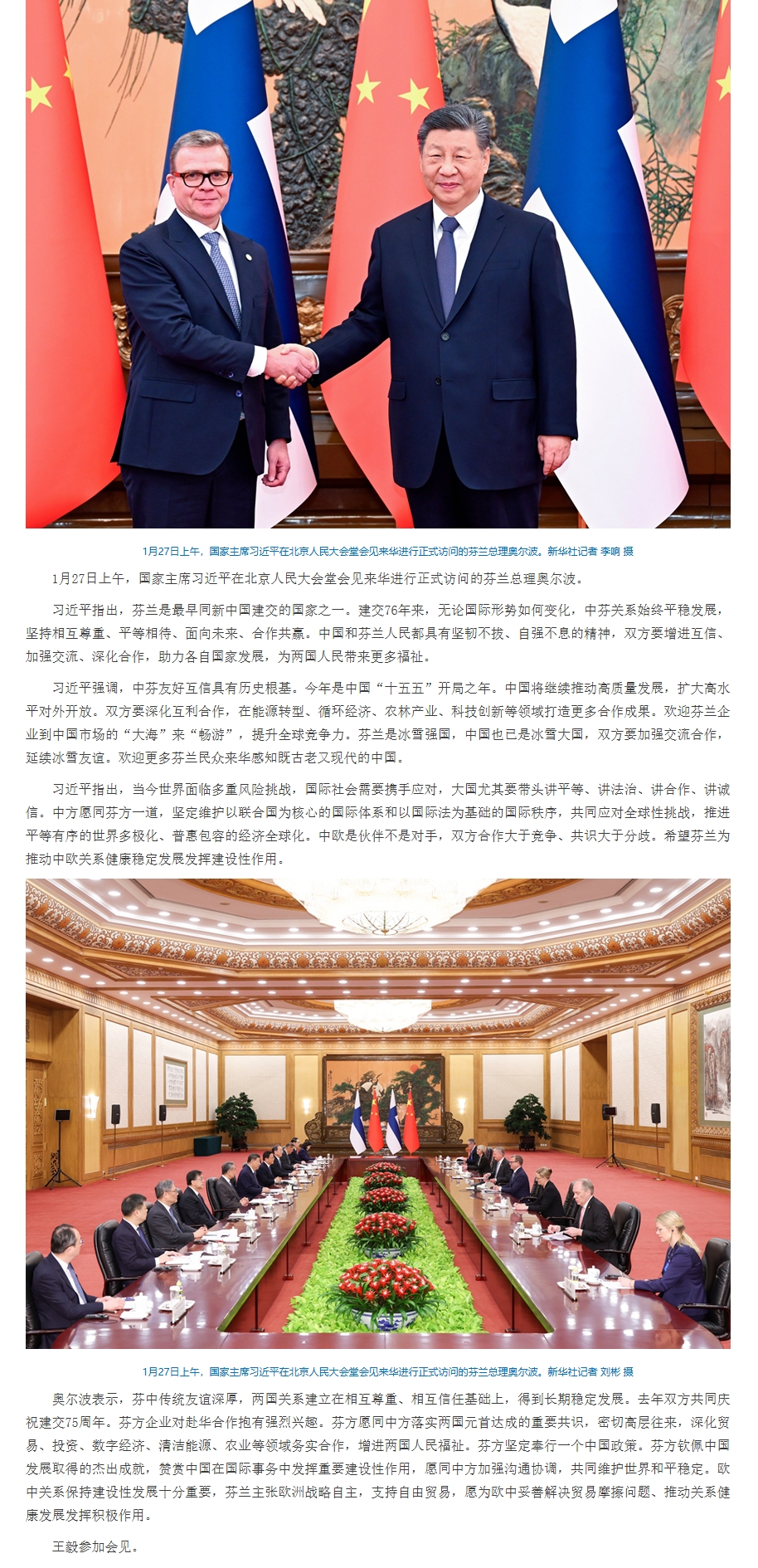 习近平会见芬兰总理奥尔波