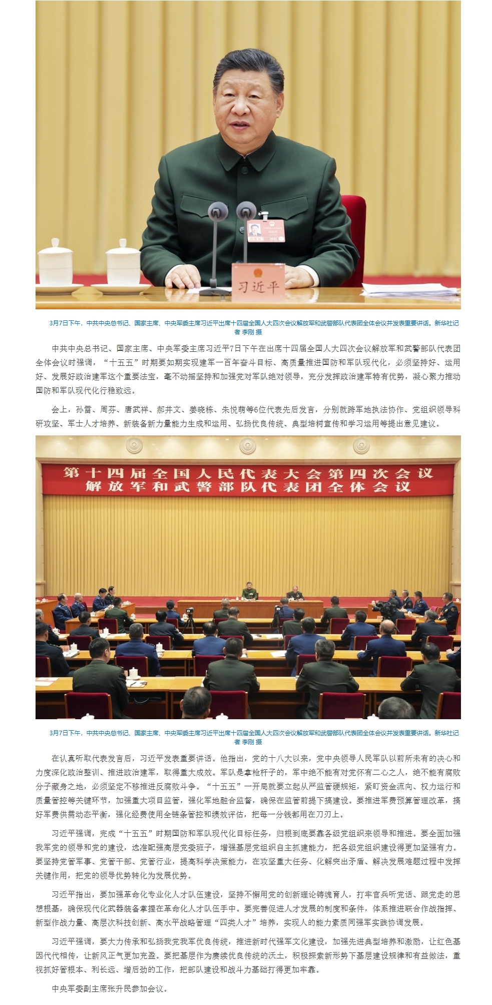 习近平在出席解放军和武警部队代表团全体会议时强调