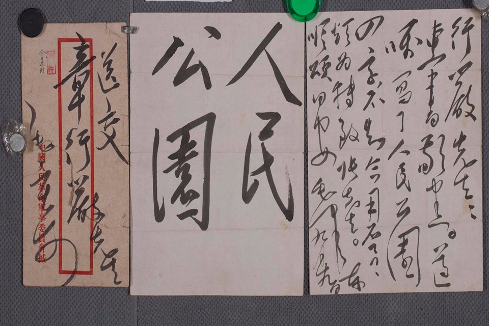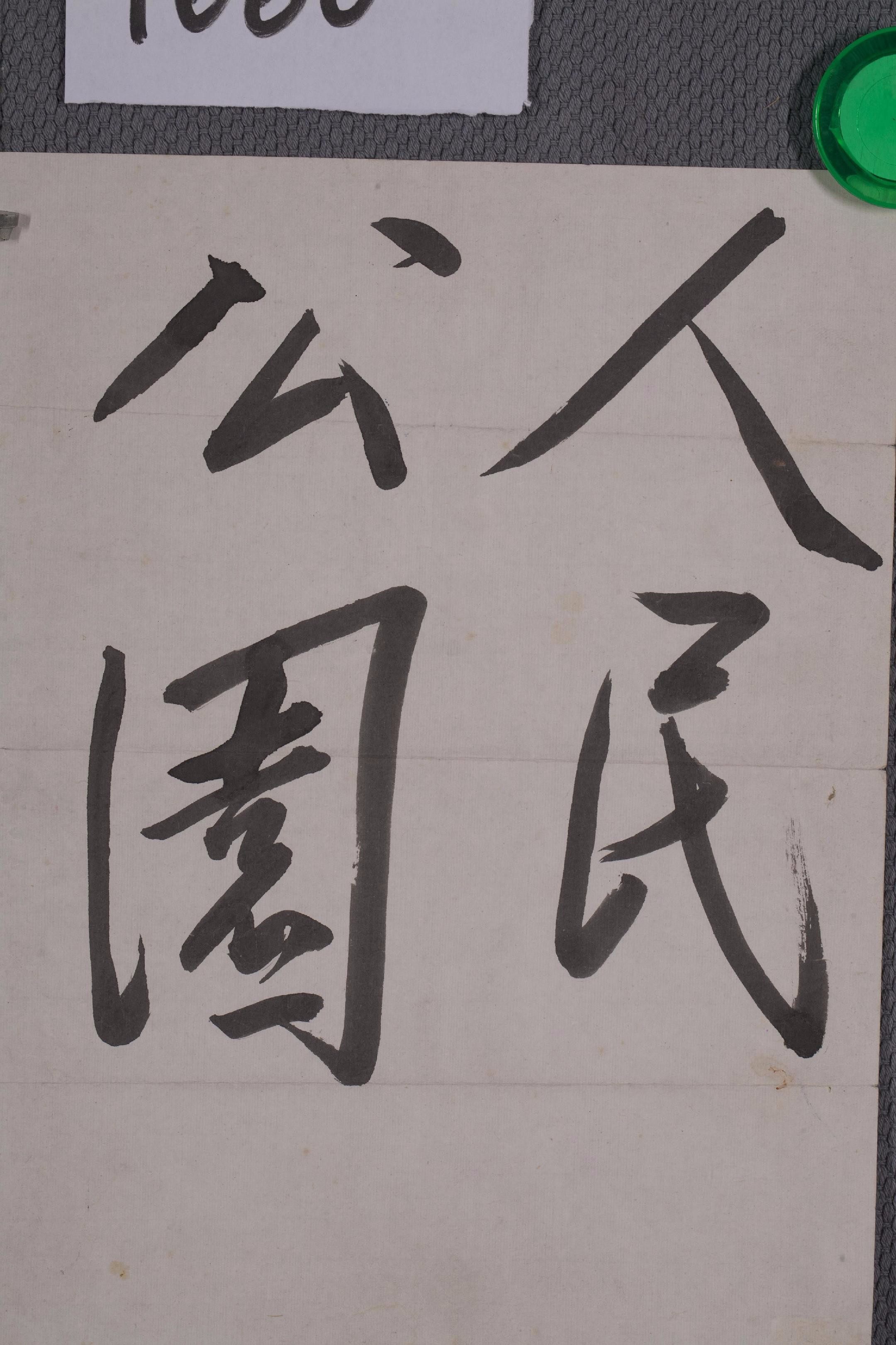 1956年9月19日书写。1954年张学良将军的胞弟张学铭先生任公园园长时,委托爱国人士章士钊先生致函毛泽东主席,请求为人民公园题字。同年9月19日,毛泽东主席亲笔复函题写了“人民公园”四个大字。信的内容是:“行严先生:惠书敬悉。遵嘱写了人民公园四字,不知合用否?烦为转致张先生。顺颂日安。毛泽东九月十九日”。得到毛主席的亲笔题字,张学铭十分高兴,立即将其制成匾额,悬挂在公园正门上方。这是毛主席为国内园林公园题写的唯一匾额。现收藏于天津博物馆。