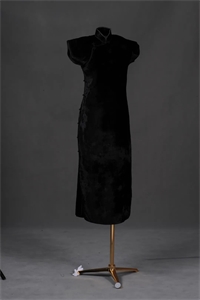 黑色轧花丝绒短袖单旗袍 1930—40年代