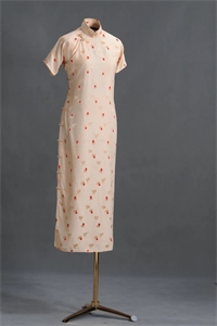 粉色提花真丝短袖单旗袍 1930—1940年代
