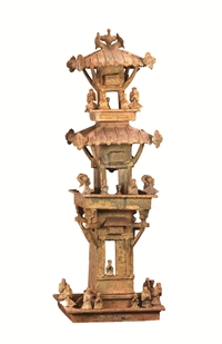 汉 绿釉三层陶望楼