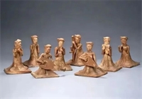 隋 彩绘坐姿伎乐女俑——笙歌一曲侧耳听