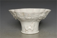明 德化窑白釉堆贴梅鹿高足杯