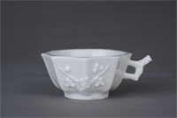明末清初 德化窑白釉贴塑梅花八角带把杯