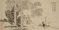 明 沈周(款)山水人物大册(之六 桐阴观鹤)