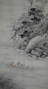 清 李育 泛舟图轴