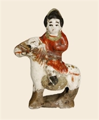 金 白釉红绿彩骑马女俑